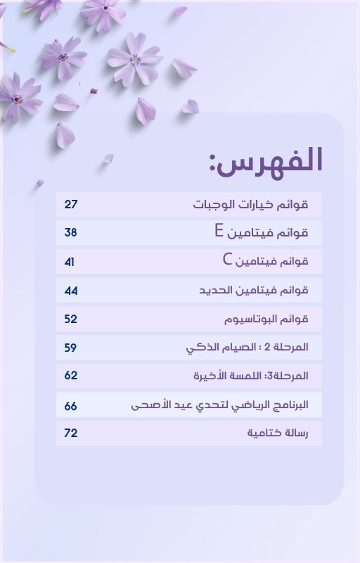 كتيب تحدي عيد الأضحى من سارة بوب فيت هو دليلكِ المتكامل لخسارة الوزن، شد الجسم، واستعادة نشاطكِ خلال أسابيع قليلة. صُمم الكتيب خصيصًا ليمنحكِ نتائج حقيقية بأسلوب بسيط، عملي، ومحفّز، دون الحاجة لأي معدات رياضية أو اشتراك بالنادي.